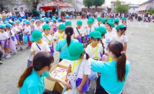 お当番さんには、お歌を歌う前にみんなに掛け声を出すお仕事があります。