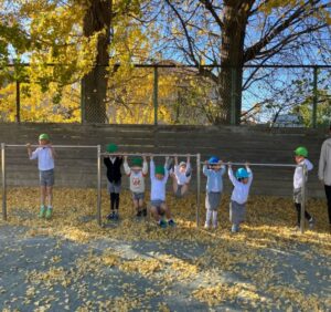 みんなが、イチョウの木の下にある鉄棒に集まってきました😊