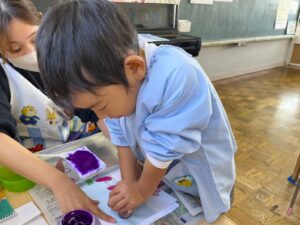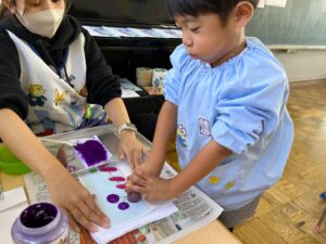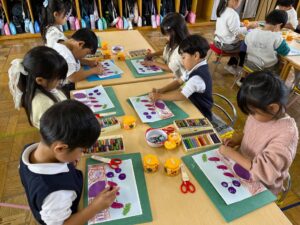 芋掘り遠足で取ってきたおいもで、”芋スタンプ製作”をしました!