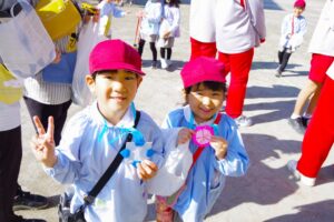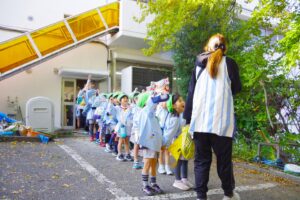 「しゅっぱつ進行~!!」と、元気に幼稚園を出発!