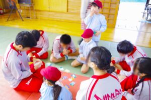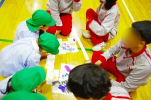中学校に着いたら、お兄さん、お姉さん、先生方に温かく迎えていだたき、グループに分かれて遊びました。