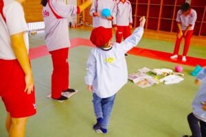 新聞紙を使ったオリジナルのじゃんけん大会では、負けたらどんどん新聞が小さくなっていき・・・