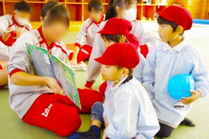 手作りパズルやかるた遊び、絵本の時間では、お兄さんやお姉さんが目線を合わせて優しく寄り添ってくれて、子どもたちは安心して過ごすことができました。