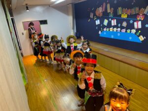 「ちょっと緊張しちゃうね・・・。」、「にこにこ笑顔でがんばろうね!」など、声をかけあう子どもたち😊