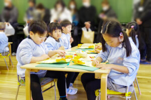 年長さんは集中して製作し、完成したものを祖父母の方にプレゼントしました。