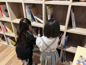 「この絵本にする!」とわくわくしながら絵本を選ぶ子どもたち。