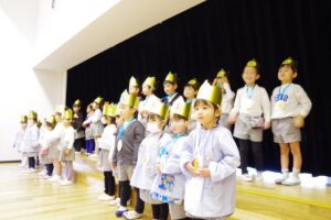 1月はインフルエンザ感染予防対策のため、各クラスでお祝いをしましたが、